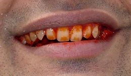 Presently, I made a mistake by making eye contact with my host. I had my pasted-on smile and he gave a big smile back. His mouth looked very much like the picture shown here. Oh dear! I made my profound excuses, left abruptly, hurried the few feet to my flat and was sick.